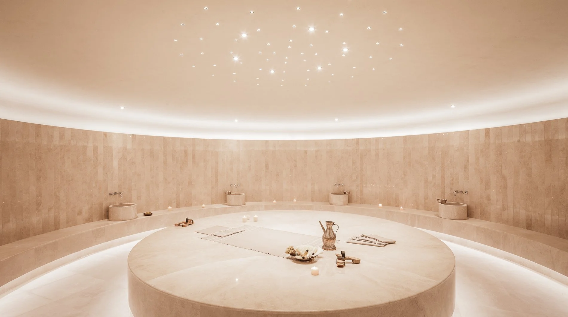 Access to spa facilities, gym, saunas, and private beaches.